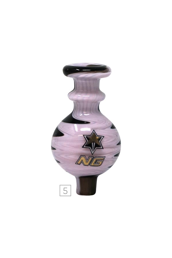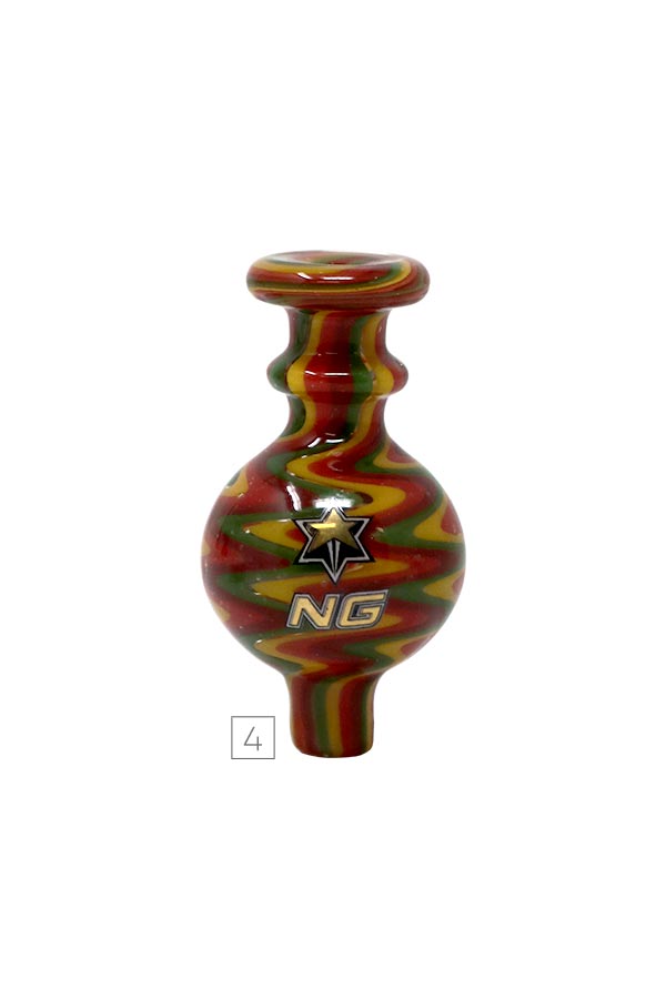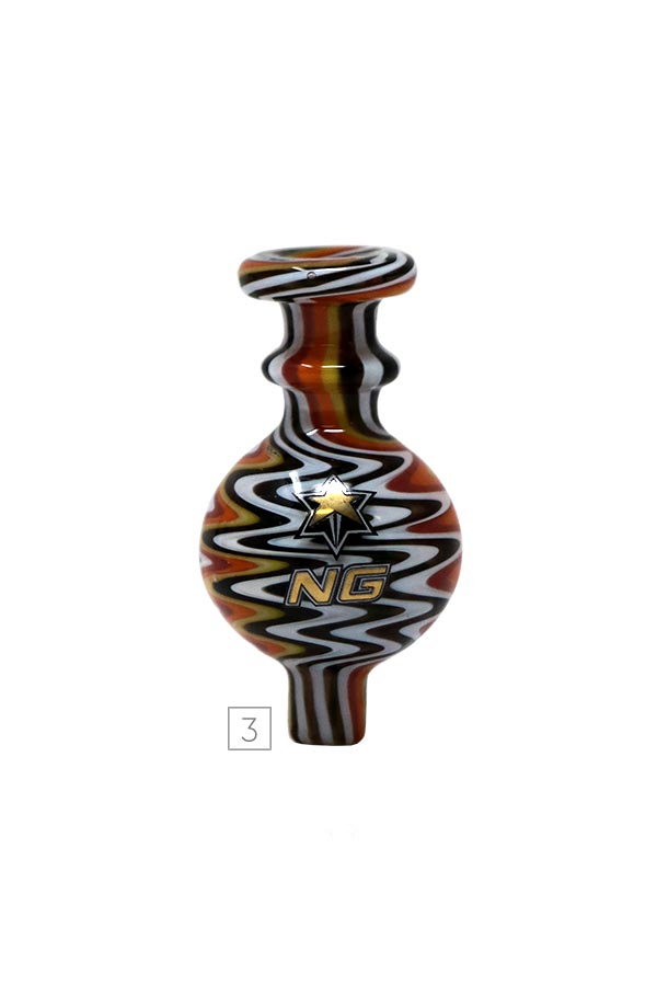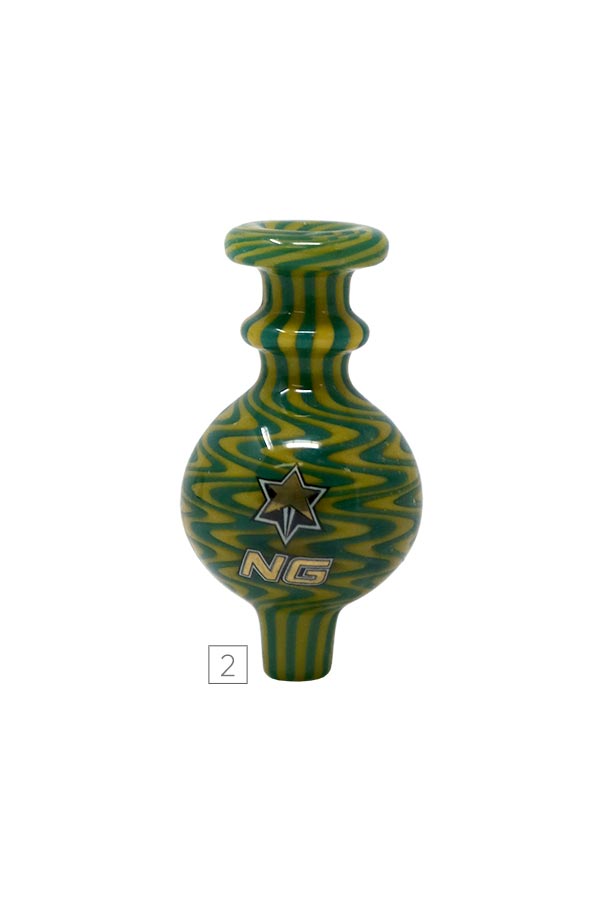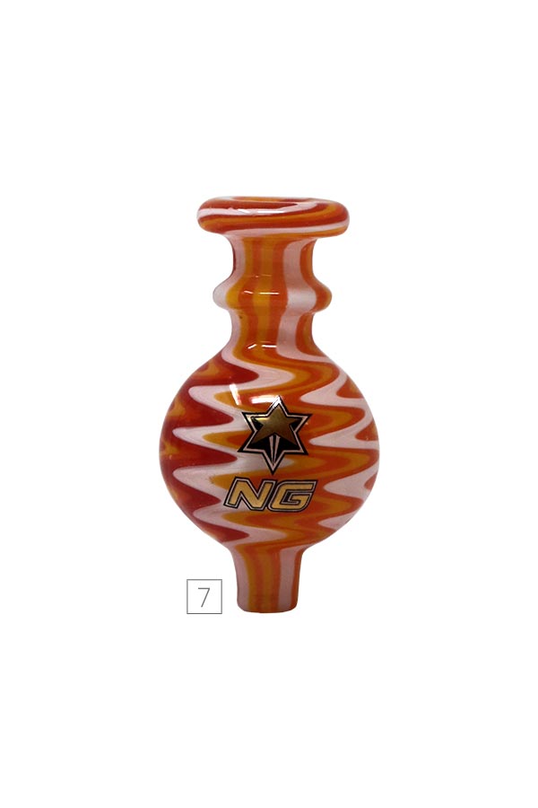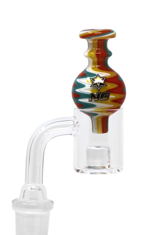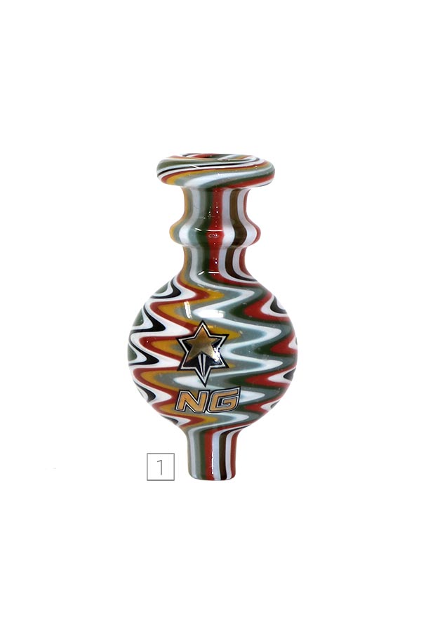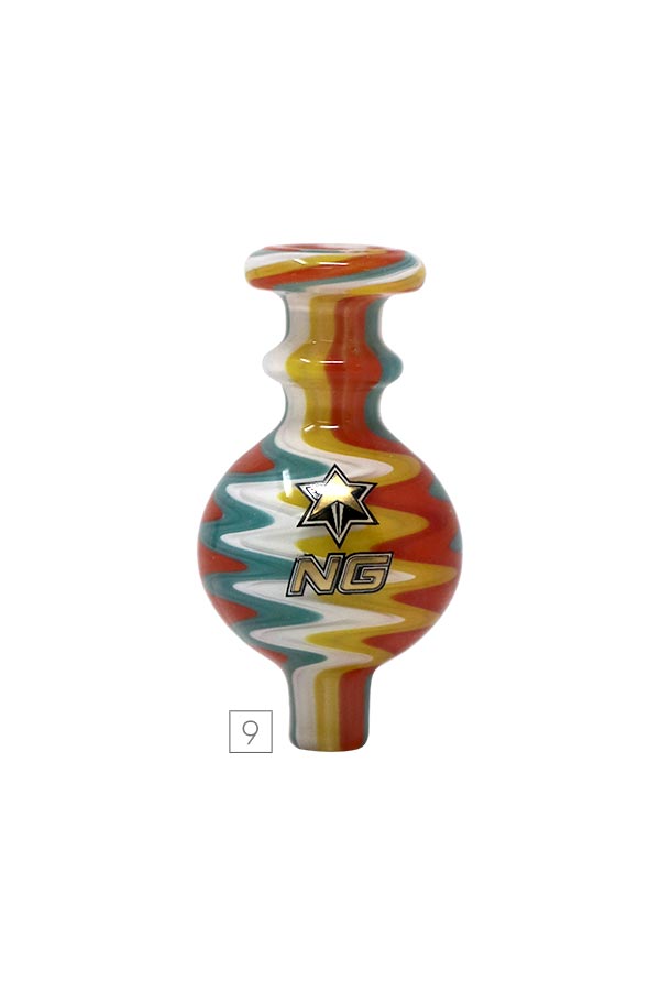Nice Glass bubble cap featuring a multicolor design from top to bottom. Works perfectly with beveled edge bangers. It modifies airflow to your nail while increasing flavor and efficiency and helps to retain the heat while dabbing at lower temps.
