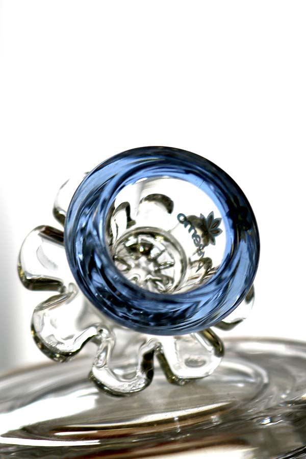 A solid, thick bowl featuring an 8-petal glass flower base for easy handling. The colourful rim frames a petal screen inside with ample openings for smooth airflow.