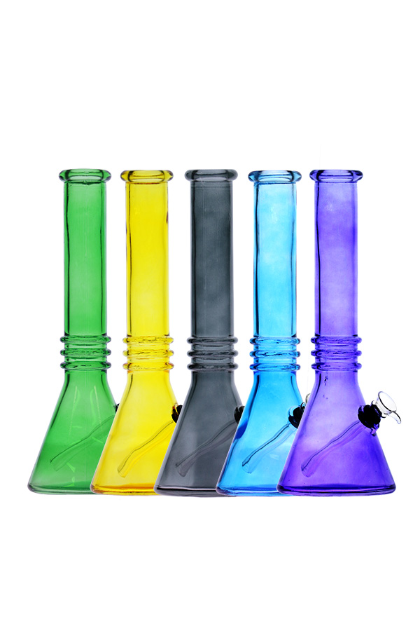These beautiful coloured soft glass bongs utilized the same connection fittings as the Blueberrys, with an angled neck to stabilize the slide bowl at the right angle. This is the non-logo version with similar three rings for easy grip: Light-weight and just the right size. The cherry on top is the BONUS downstem bowl we provide with this bong purchase.