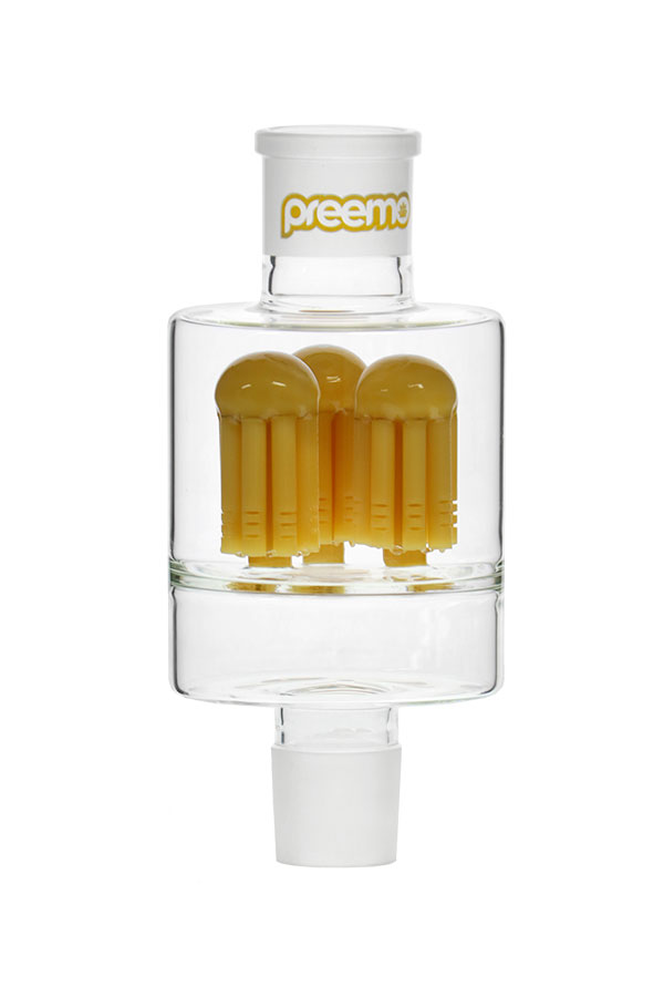 Preemo DIY 24-arm triple tree percolator middle section. This 7mm thick mid-section is a great addition to your water pipe multi-piece collection for the ultimate diffusion to cool the smoke and get a super smooth hit. If you like tree percs, imagine having three of them in one piece.
