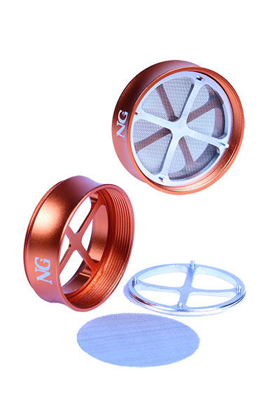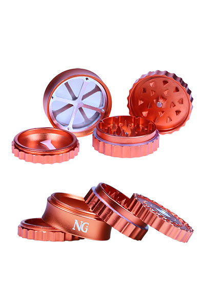 A 4-Piece CNC-made pure aluminum grinder with 27 tricorne teeth that have super sharp edges to shred your herbs into a fine consistency. It includes pollen screen and catcher sections and has a scraper included. The nylon friction ring ensures smooth grinding when the magnetic lid is cranked. It is designed with ridges that provide a good grip at both the top and bottom.