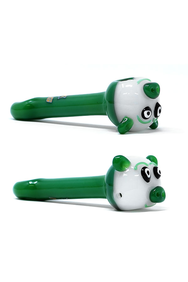 This glass piggy handpipe comes with double-studded stopper which are also the ears, making it hard to roll away. The bowl is in a large round chamber that fits comfortably in the hand and has a single carb hole. Choose from our assortment of colours.