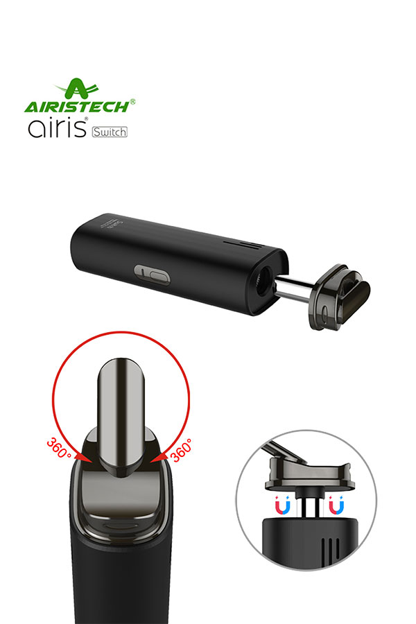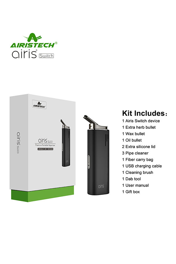 The Airis Switch 3-in-1 vape pen features a 360° swivel mouthpiece that performs great with dry herb, oil and wax. It has a high-grade ceramic oven and an isolated air path. A long-lasting little device with its big 2200 milliamp battery.